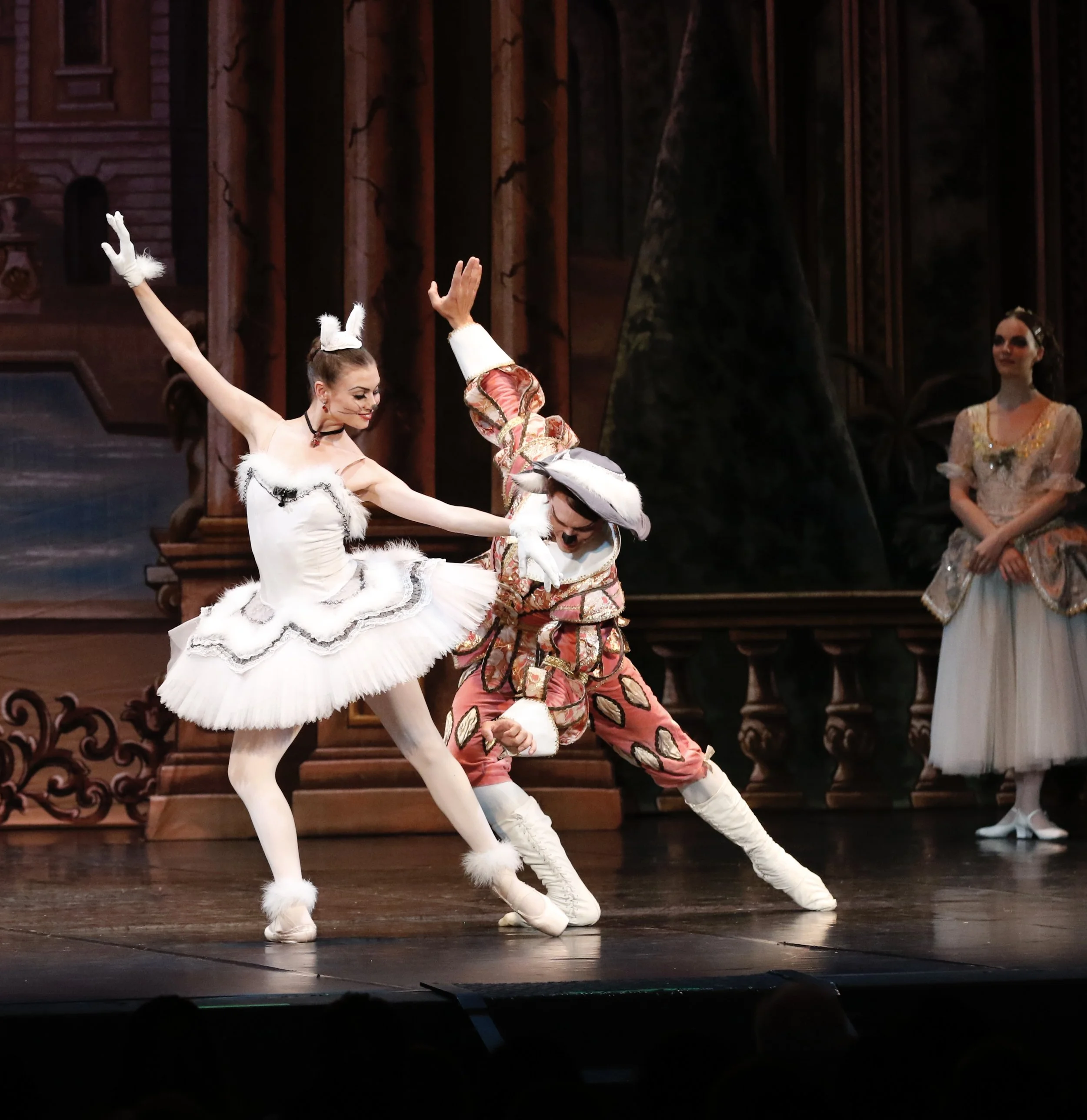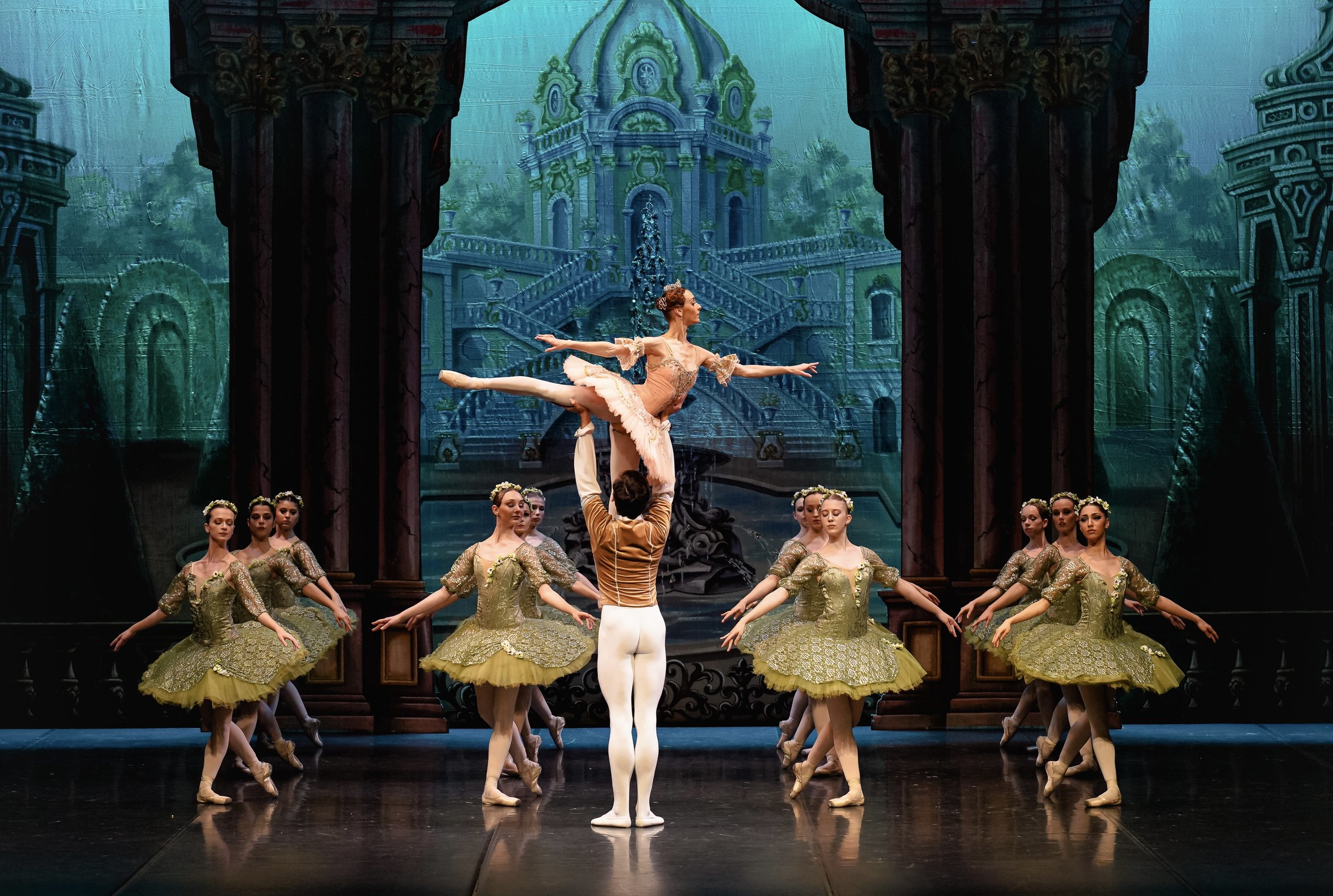 Princess Aurora, the King's daughter, falls into eternal sleep after pricking herself on a knitting needle on the day of her coming-of-age celebration. This is the revenge of the evil fairy Carabosse, whom the royal master of ceremonies, Catalabutte, forgot to invite to the princess's christening many years ago. A hundred years later, thanks to the good fairy Lilac, Prince Désiré enters the sleeping forest while hunting, where he sees the sleeping Aurora. The enamoured prince's kiss awakens the beauty and breaks the fairy Carabosse's evil spell. The ballet ends with a celebration in honor of the wedding of Princess Aurora and Prince Désiré.